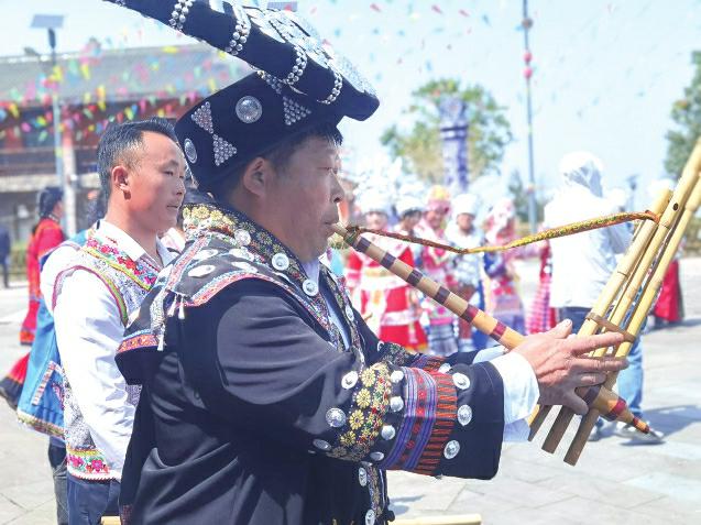 长桌宴、竹竿舞、情歌对唱……马边民主镇的玛瑙苗寨也是一绝。“阿妹站在寨门口,手捧一碗拦门酒,贵客你若进寨来,先喝一碗拦门酒……”在寨子门口,身穿节日盛装的苗族姑娘等候在道路两旁,踏着悠扬的芦笙调,唱着动听的祝酒歌,为媒体代表们献上苗家米酒。