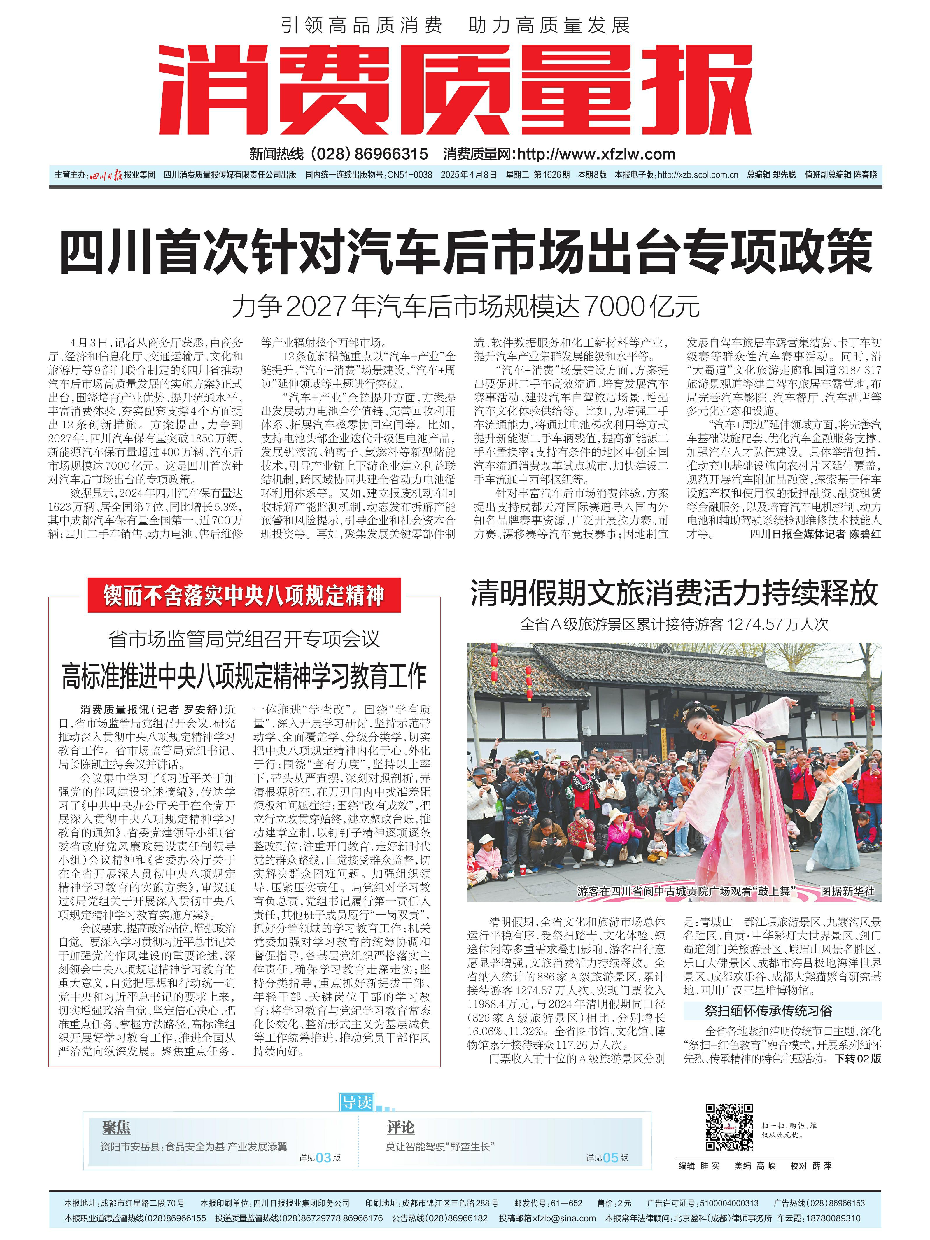 4月3日,记者从商务厅获悉,由商务厅、经济和信息化厅、交通运输厅、文化和旅游厅等9部门联合制定的《四川省推动汽车后市场高质量发展的实施方案》正式出台,围绕培育产业优势、提升流通水平、丰富消费体验、夯实配套支撑4个方面提出 12 条创新措施。方案提出,力争到2027年,四川汽车保有量突破1850万辆、新能源汽车保有量超过400万辆、汽车后市场规模达7000亿元。这是四川首次针对汽车后市场出台的专项政策。