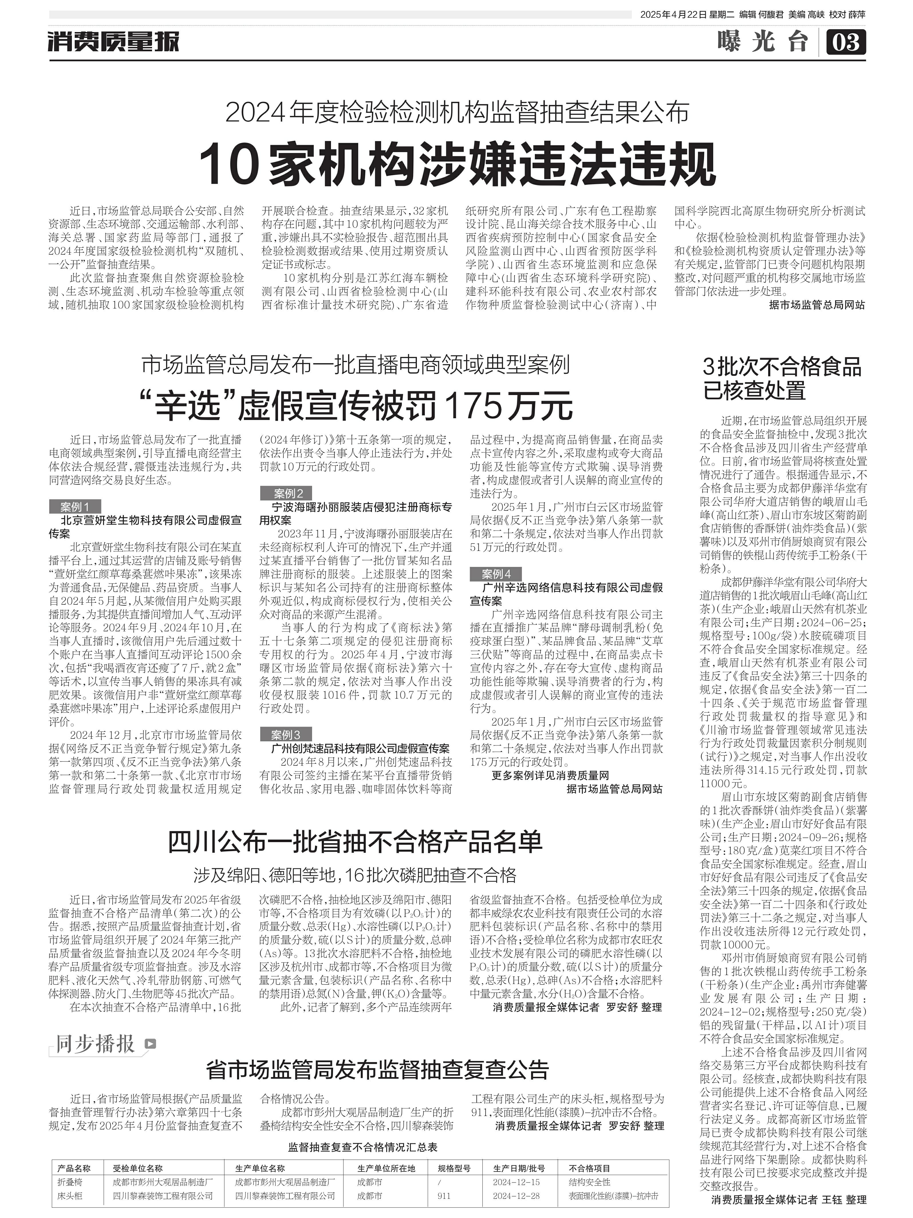 ·四川公布一批省抽不合格产品名单