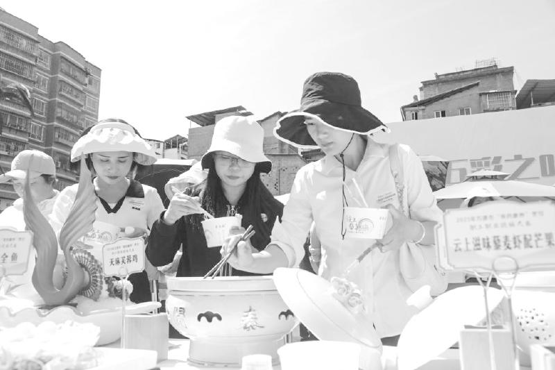 比赛现场气氛热烈,参赛选手们在后厨展示各自的精湛技能,备菜、摆盘、雕琢……娴熟的烹饪技巧让人目不暇接。12座猛火灶依次排开,选手们围绕“旧院黑鸡 + 天麻”规定菜大显身手,将旧院黑鸡块、天麻辅以作料,施以炸、炒、炖、煲等工序,不一会儿,黑鸡的浓郁香气和天麻的淡淡药香弥漫开来,令人垂涎欲滴。