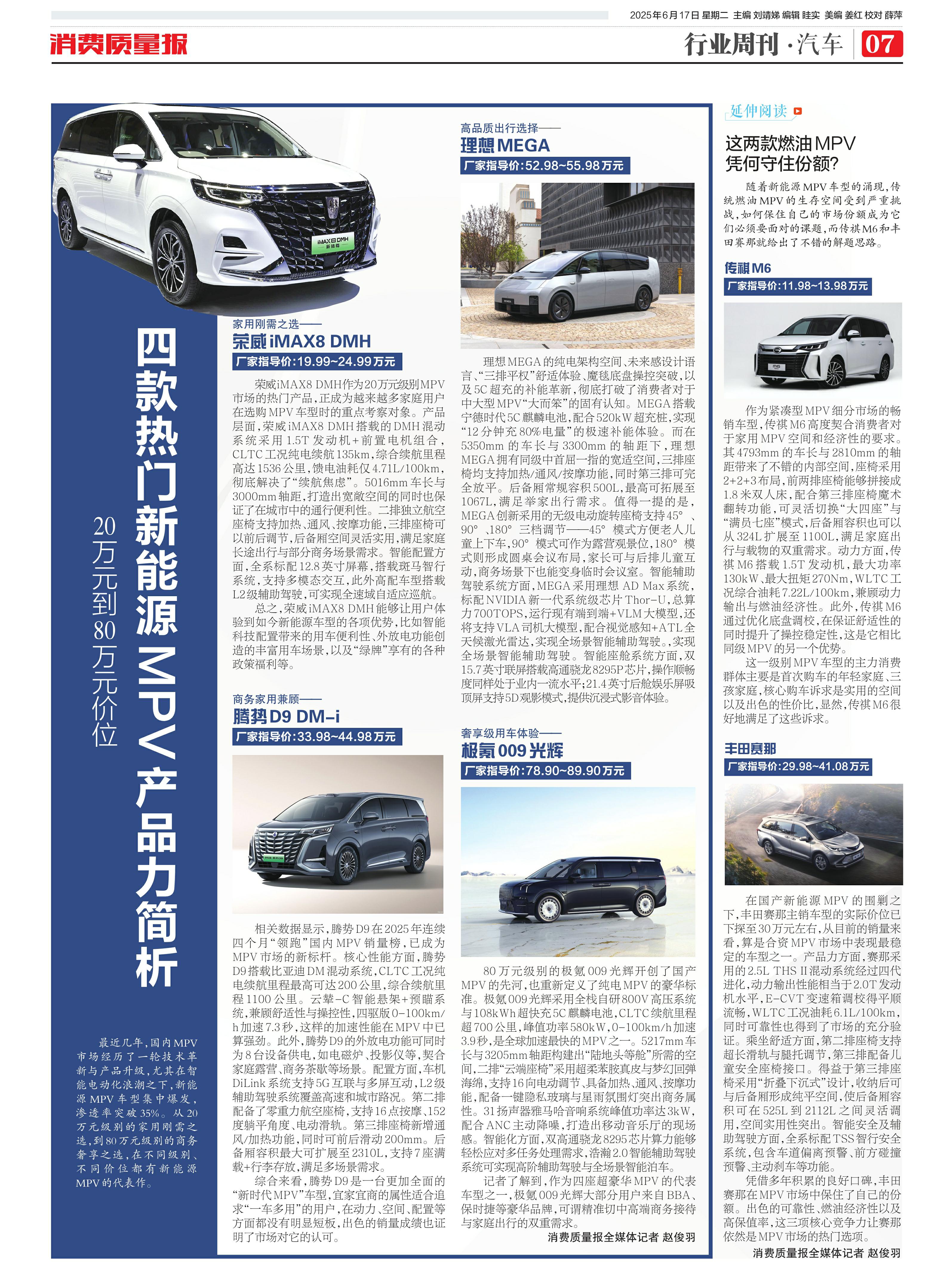 ·四款热门新能源MPV产品力简析