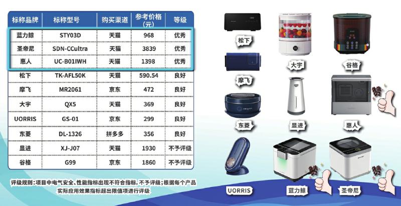 经过比较,10款试验样本中有3款评级优秀,5款评级良好,2款不予评级。