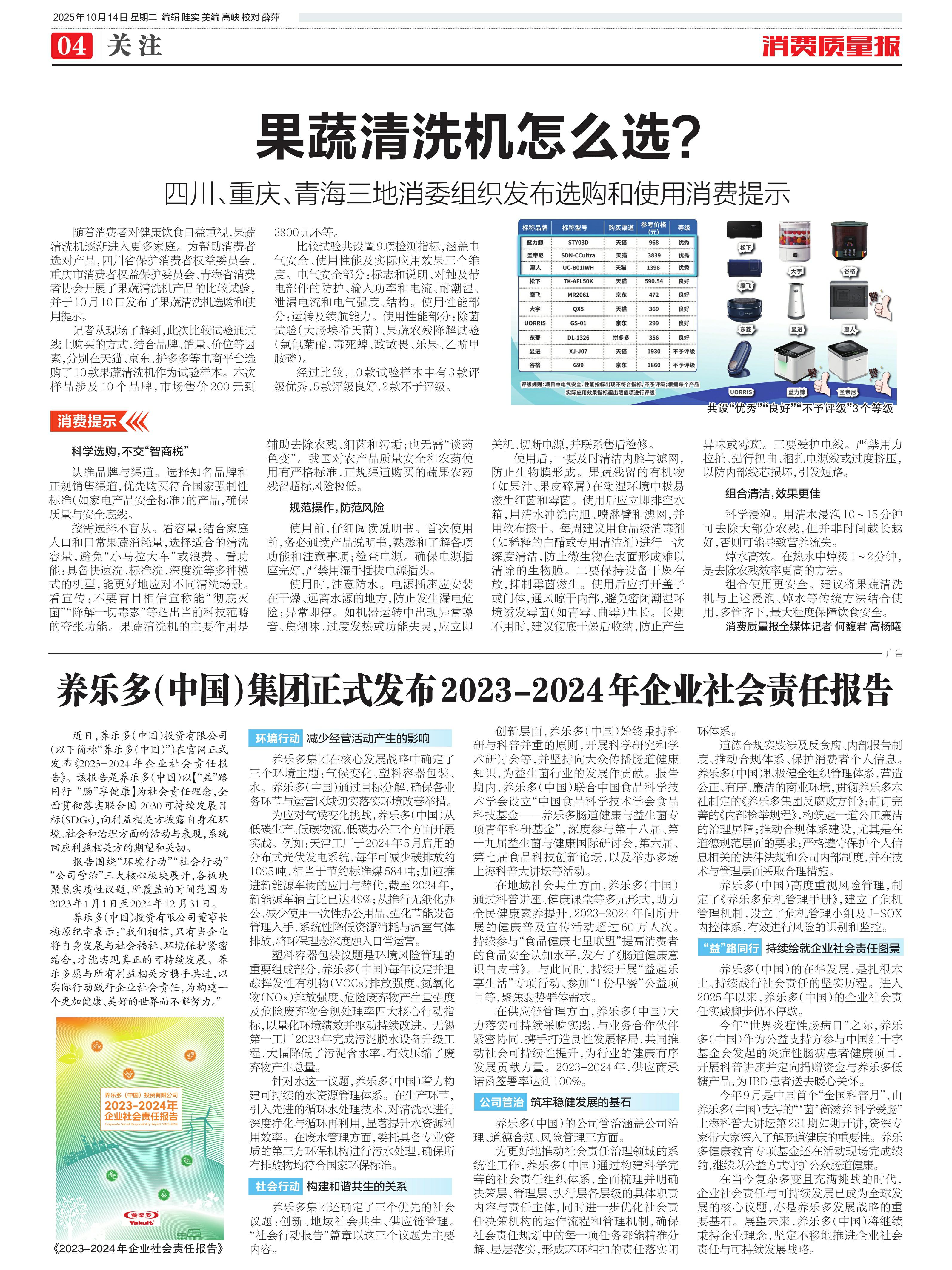 ·养乐多(中国)集团正式发布2023-2024年企业社会责任报告