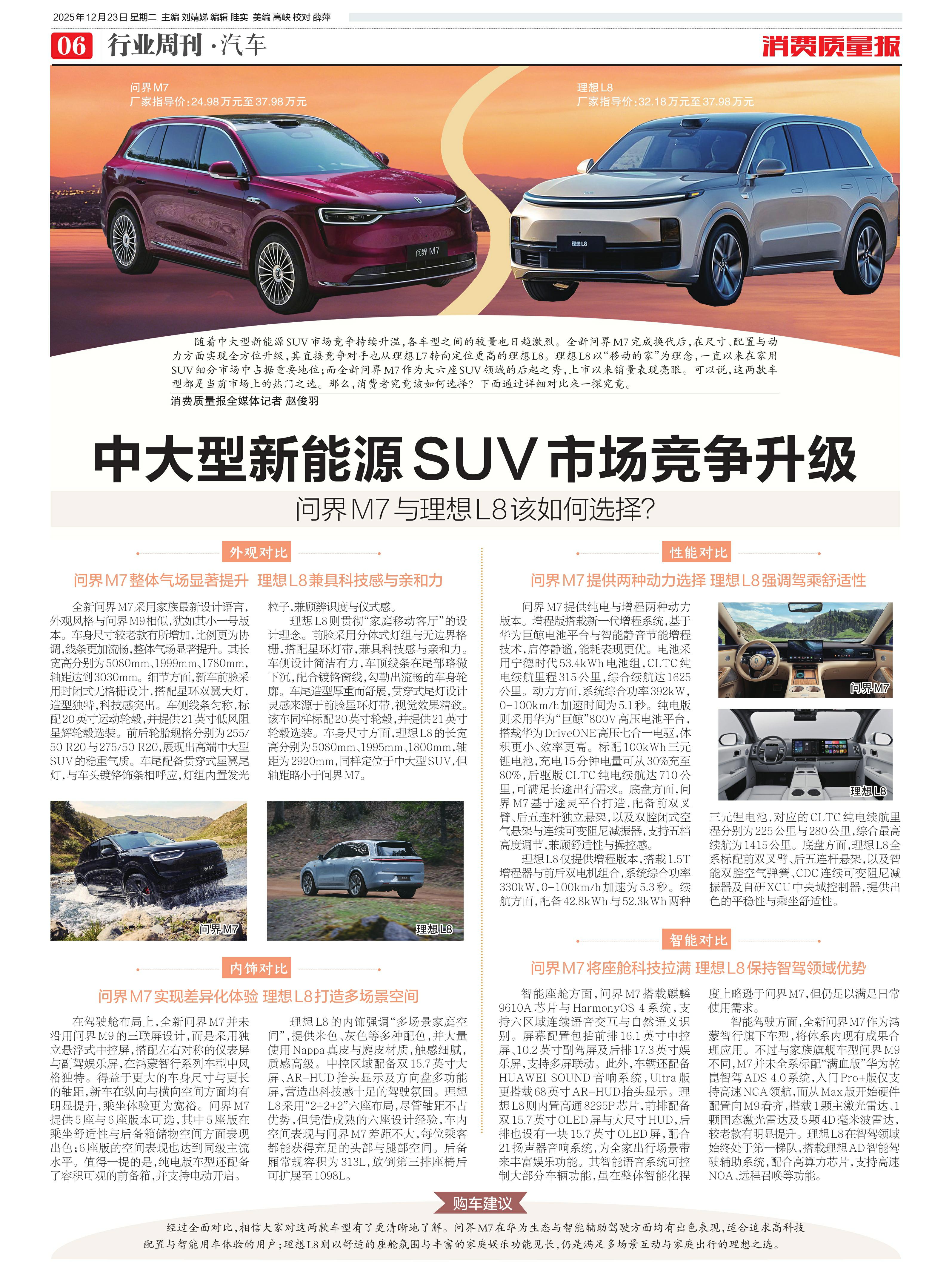 问界M7整体气场显著提升 理想L8兼具科技感与亲和力