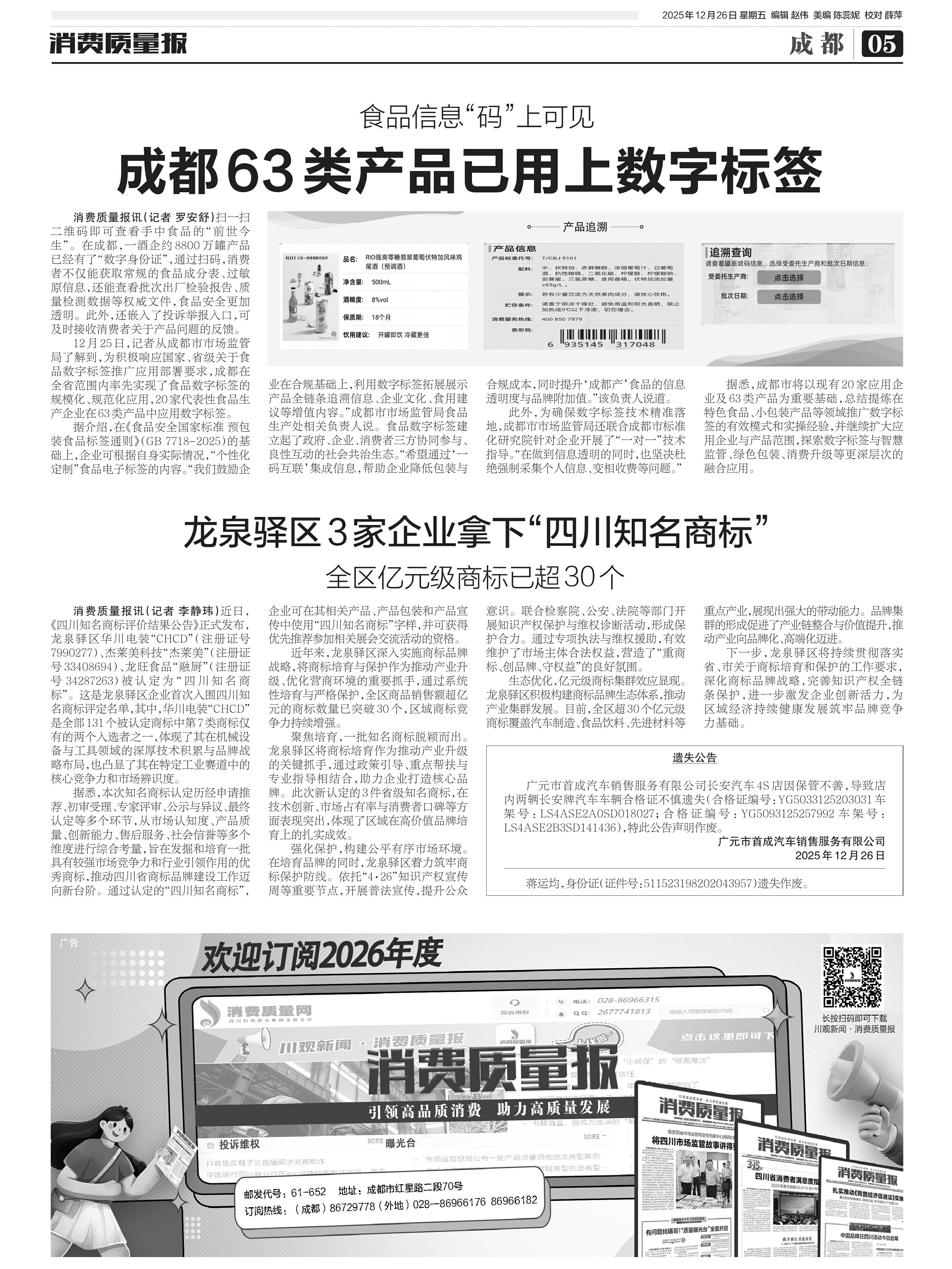 ·龙泉驿区 3 家企业拿下“四川知名商标”