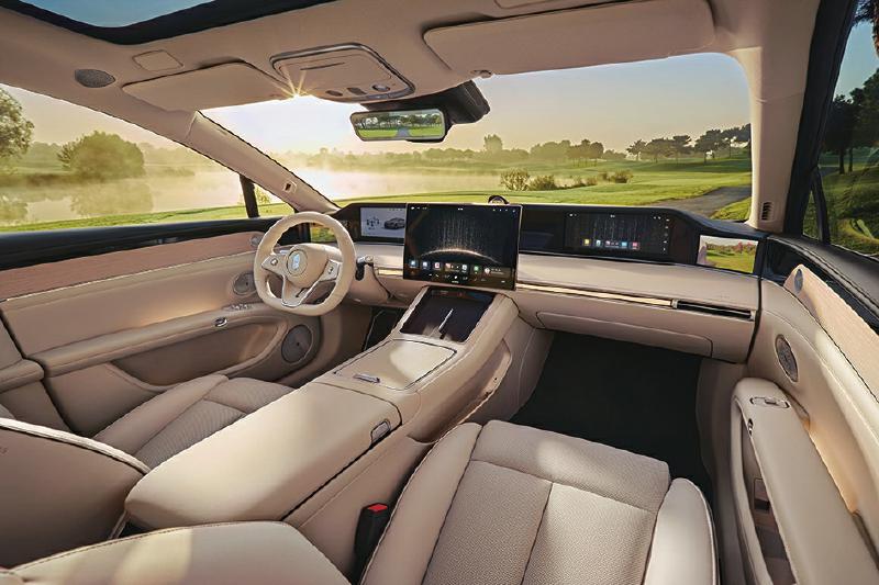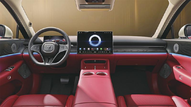 内饰是两车舒适性比拼的核心区域。岚图追光L秉承“山海同光”理念,营造出简约而高级的东方禅意座舱。T字形中控布局简约大气,配备16.1英寸3K HDR悬浮中控屏与10.25英寸仪表屏,辅以256色氛围灯及智能美妆镜。座椅是其一大卖点:豪华云朵座椅采用10层人体工学结构+35mm快慢回弹海绵,全系标配前后排加热、通风与10点SPA按摩功能;主驾支持14向电动调节与记忆、腿托延伸,副驾则为真零重力座椅,可一键实现超宽角度舒躺。此外,该车还配备1.21平方米双段全景天幕、四温区空调、6.6L宽温域智能冷暖冰箱以及VOYAH Sound 7.1.4全景声音响系统,共同打造出静谧奢华的移动私享空间。