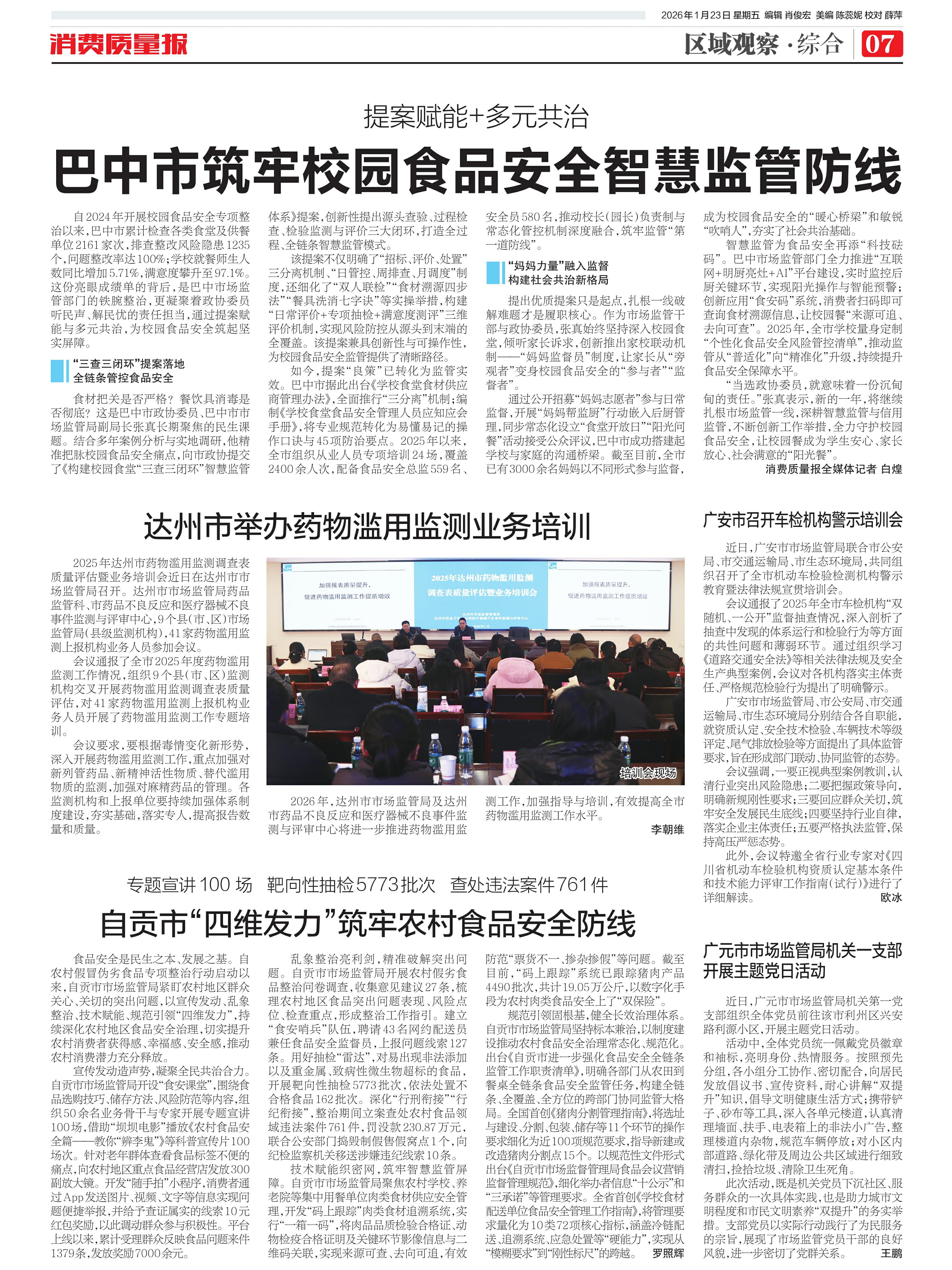 ·巴中市筑牢校园食品安全智慧监管防线