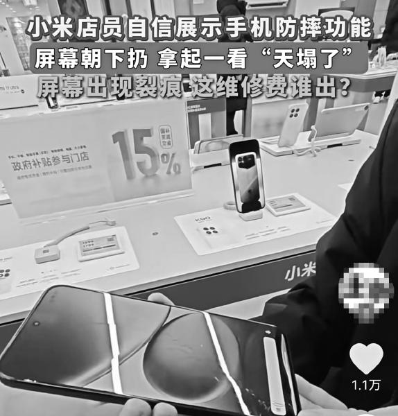 近日,一小米店员为展示手机的防摔性能,将手机屏幕朝下从手中扔出,结果手机落地后屏幕当场出现裂痕。相关视频一经发布,迅速引发网友热议。