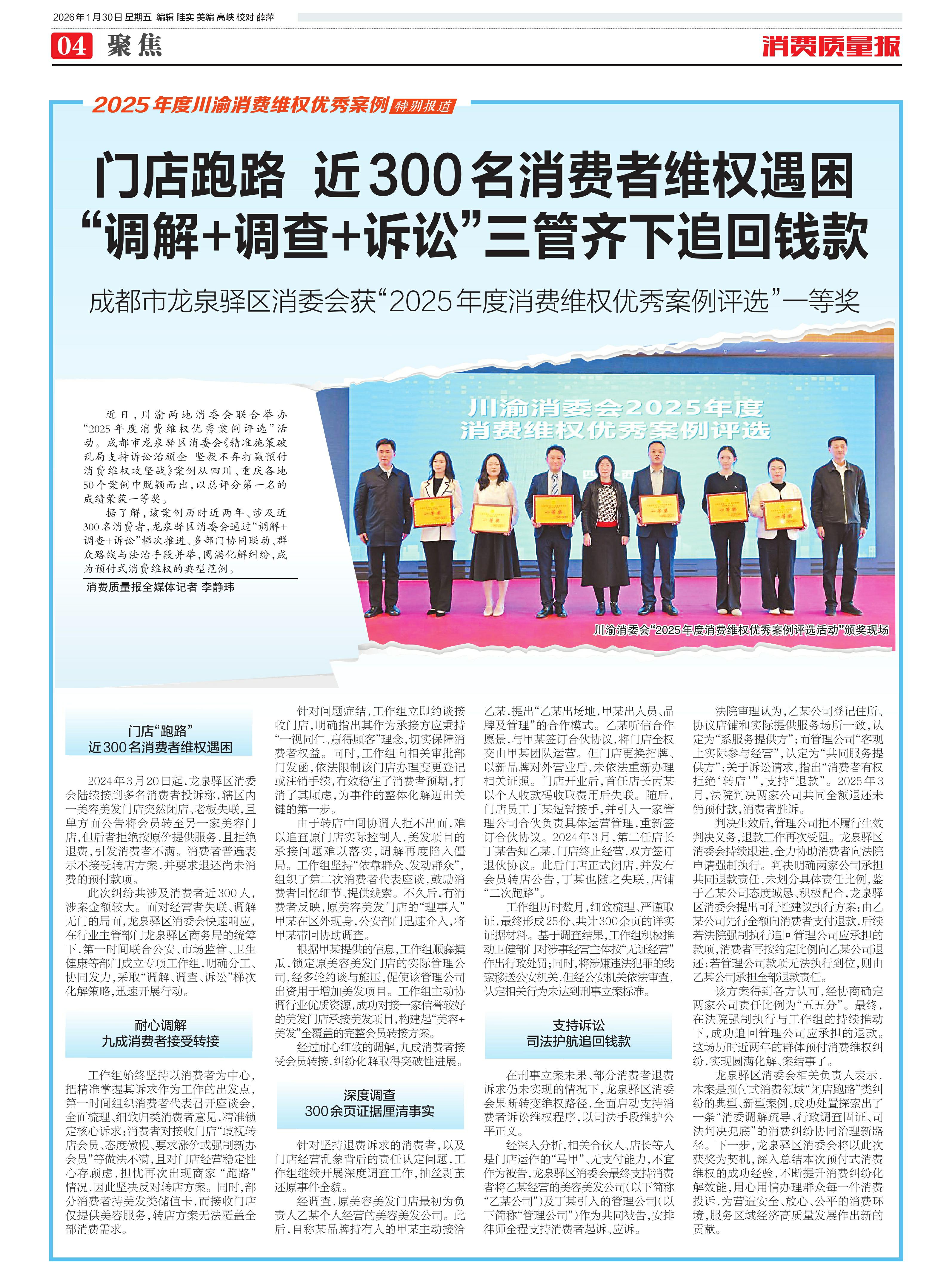 ·门店跑路 近300名消费者维权遇困 “调解+调查+诉讼”三管齐下追回钱款