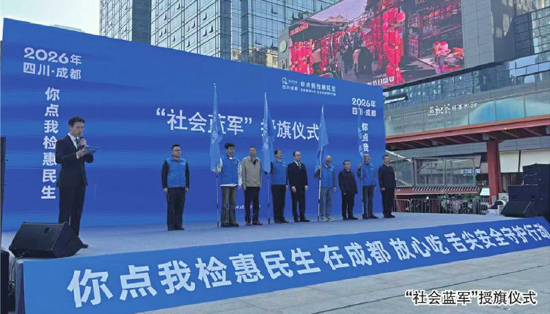活动现场举行了食品安全“你点我检惠民生”“社会蓝军”授旗仪式,标志着成都食品安全治理迈入“社会共治+技术赋能”的全新阶段。