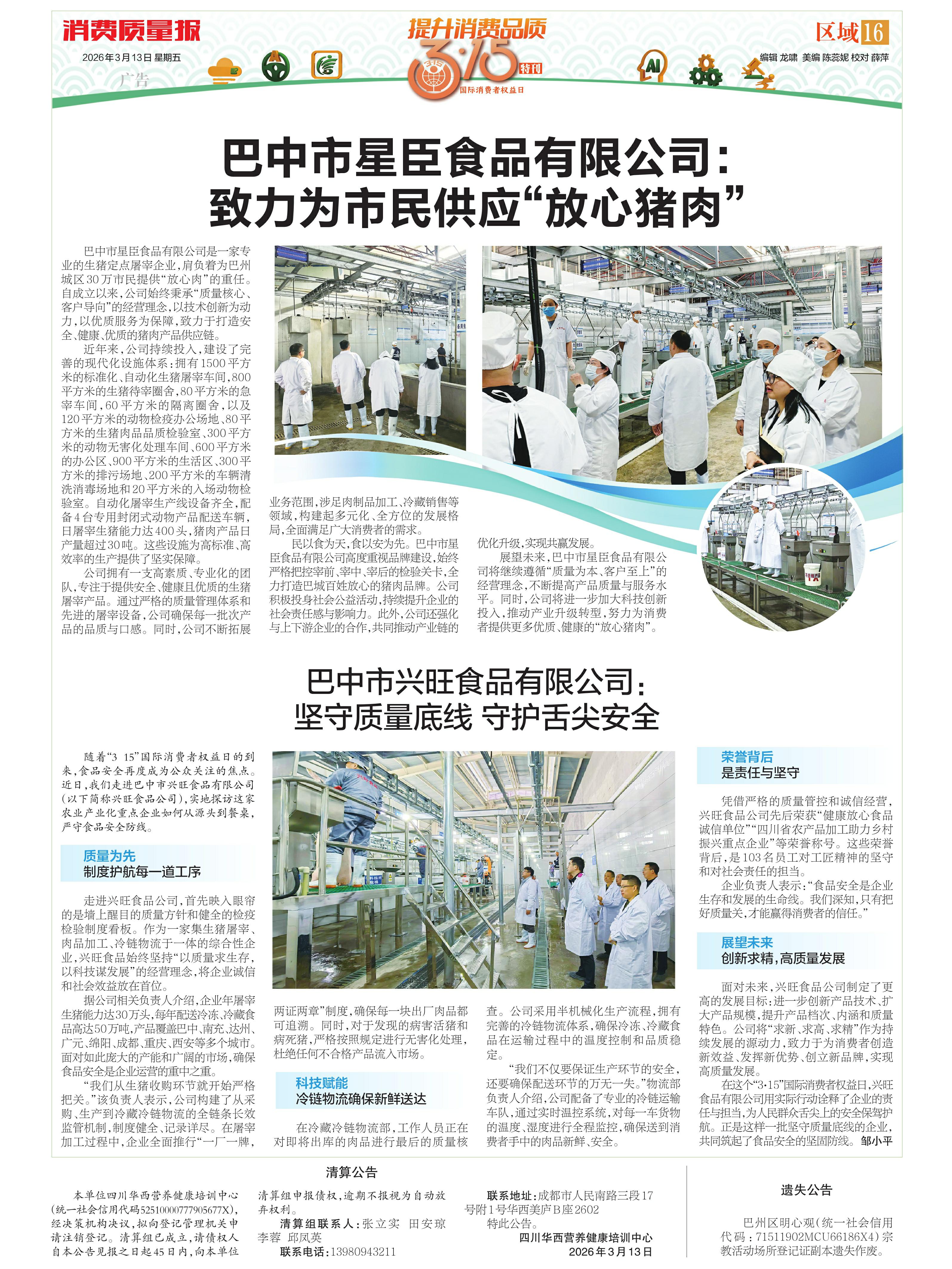 ·巴中市兴旺食品有限公司:坚守质量底线 守护舌尖安全