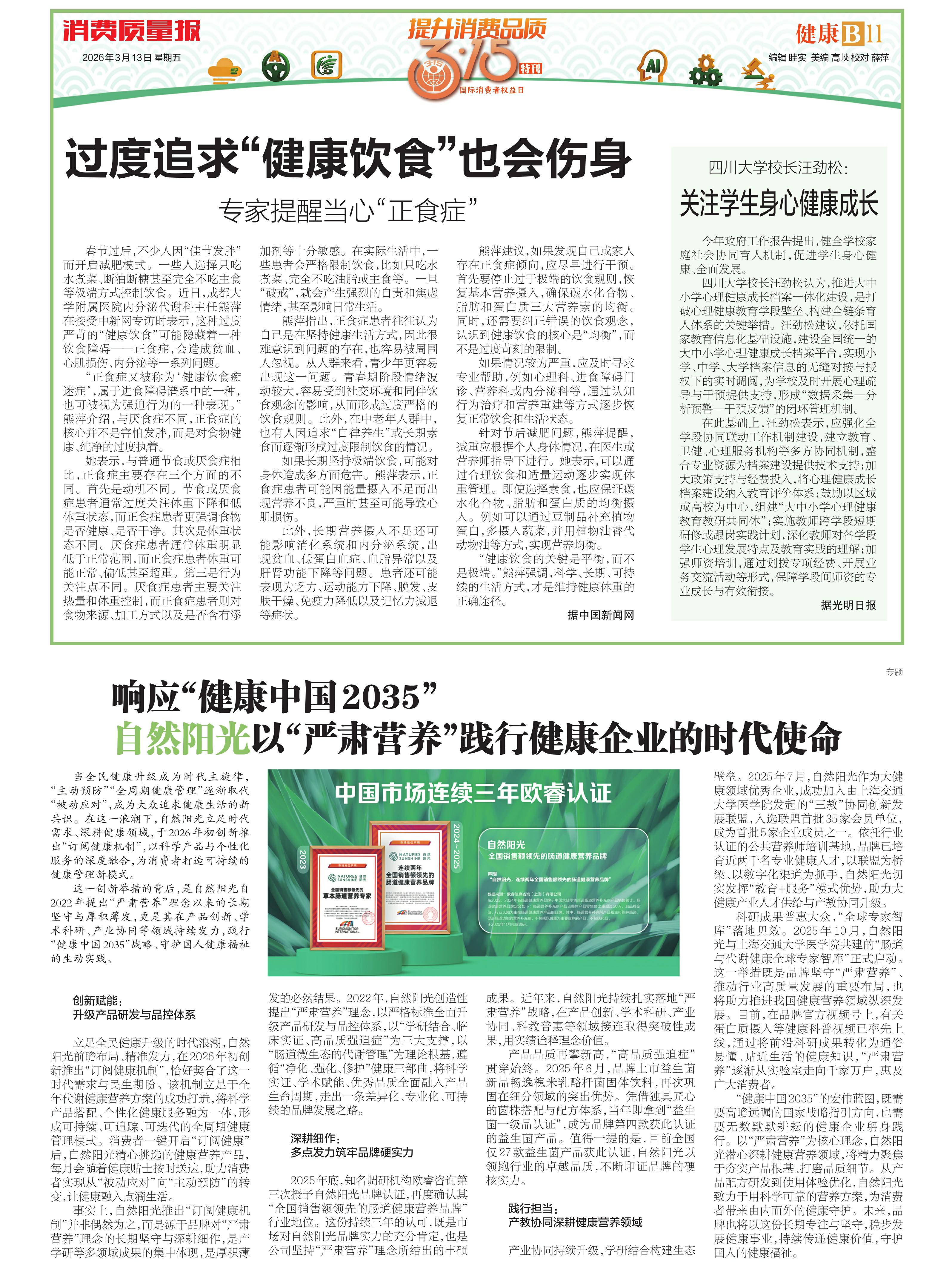 ·响应“健康中国 2035” 自然阳光以“严肃营养”践行健康企业的时代使命