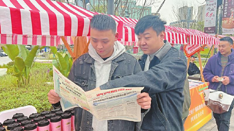 “X市集”参与企业代表、消费者阅读《消费质量报》