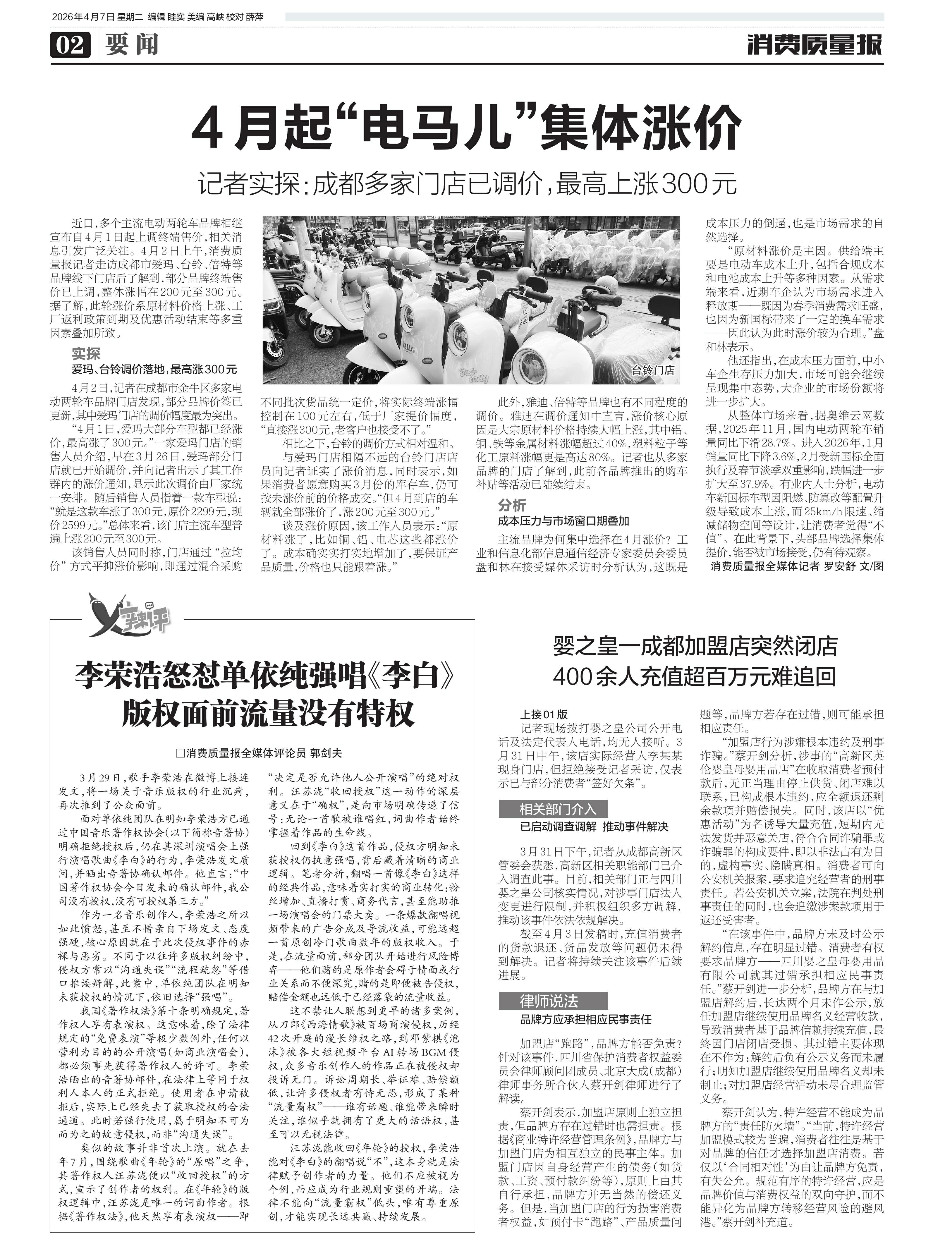 ·4月起“电马儿”集体涨价