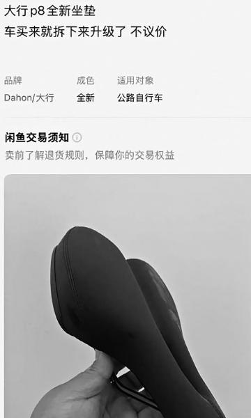 事情还要追溯到 2025 年 5月。报道指出,熊先生是一位骑行爱好者,有十多年的骑行经历。他在淘宝一店铺花3268元买了一辆大行(DAHON)P8折叠自行车,因为想升级坐垫,便把原装坐垫拆了下来,顺手挂在了闲鱼上,标价50元。商品描述写着“大行P8全新坐垫,车买来就拆下来升级了,不议价。”没过几天,坐垫就被一位福建买家拍下。
