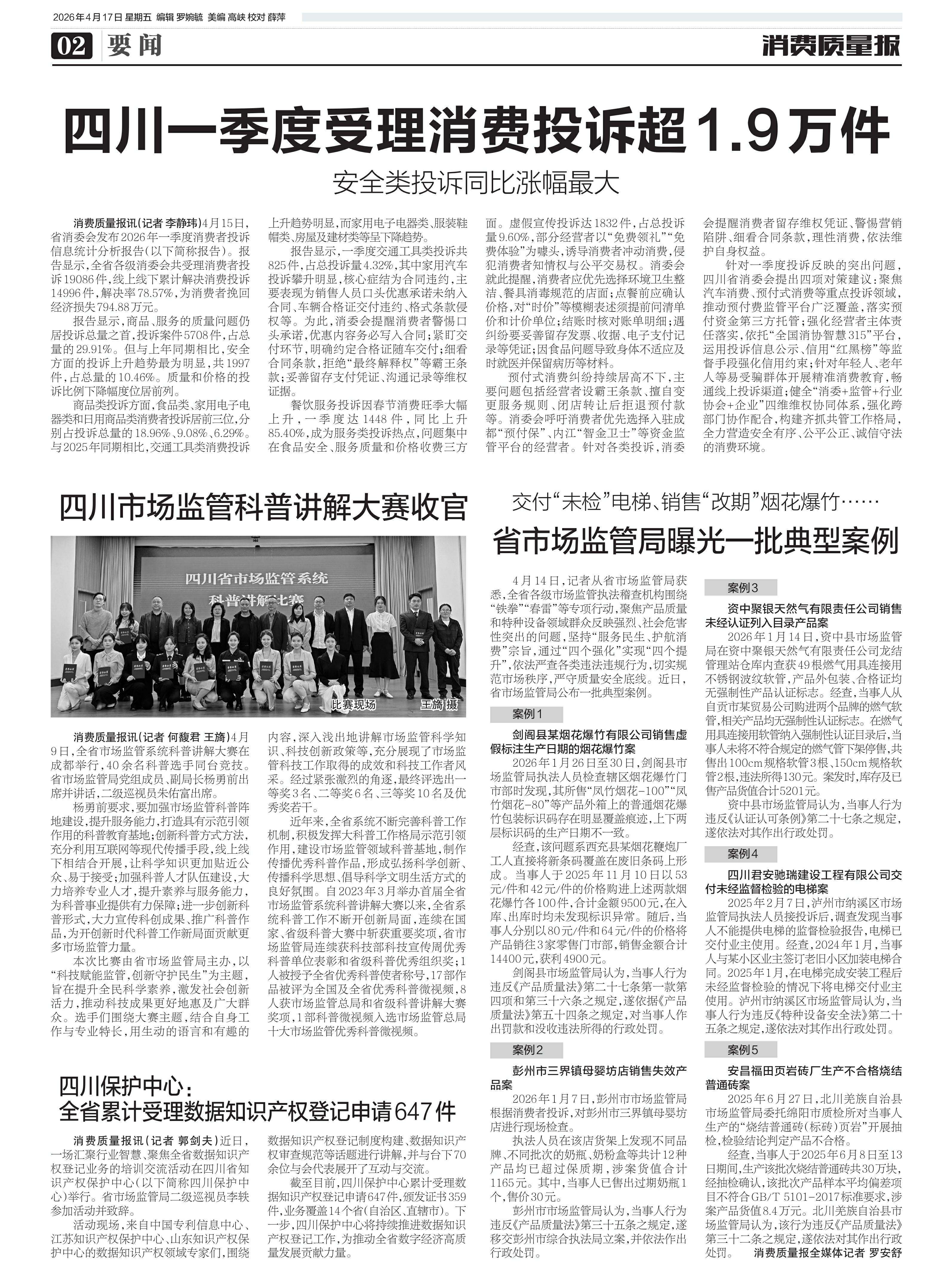 ·四川一季度受理消费投诉超1.9万件
