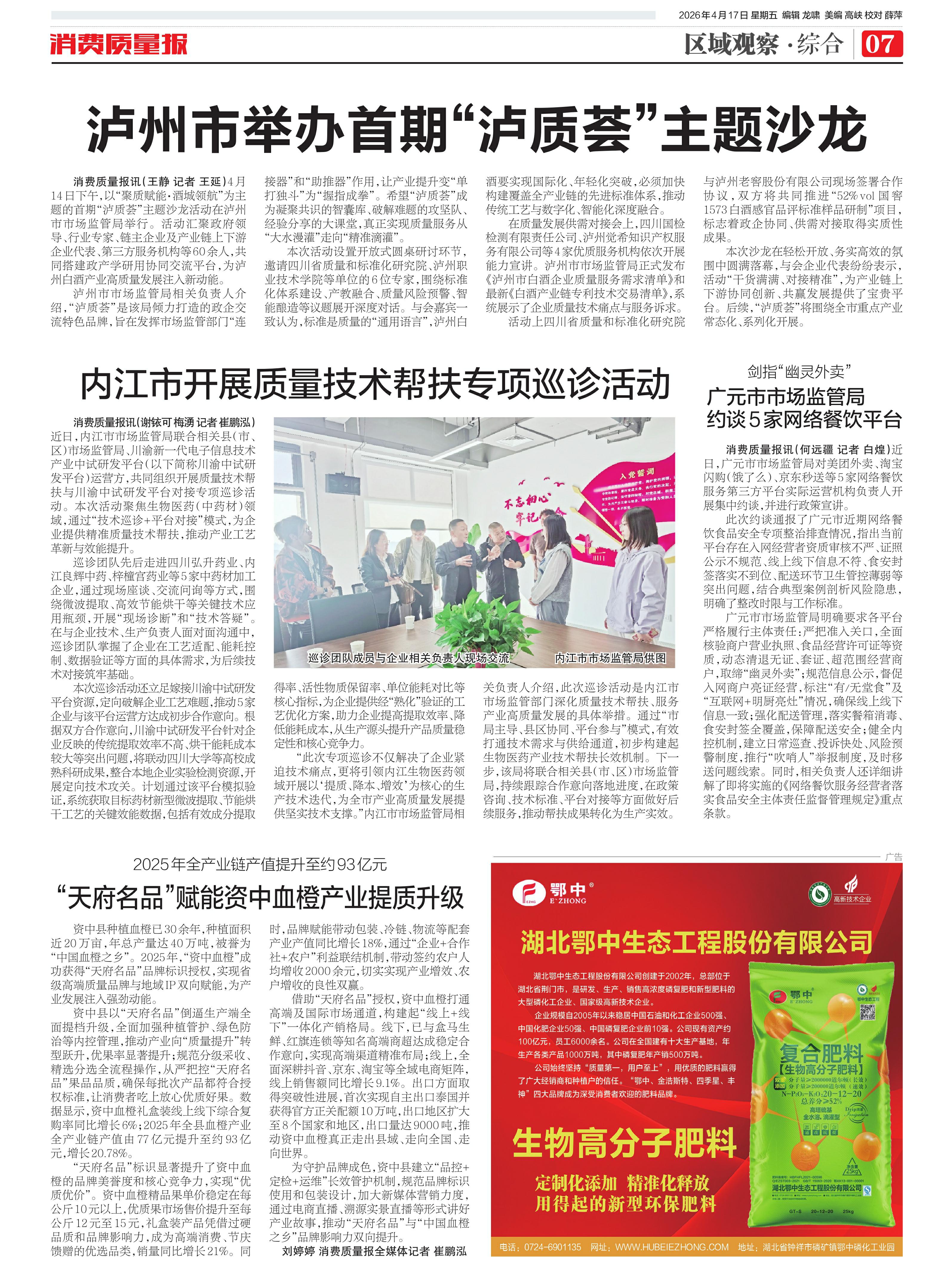 ·内江市开展质量技术帮扶专项巡诊活动